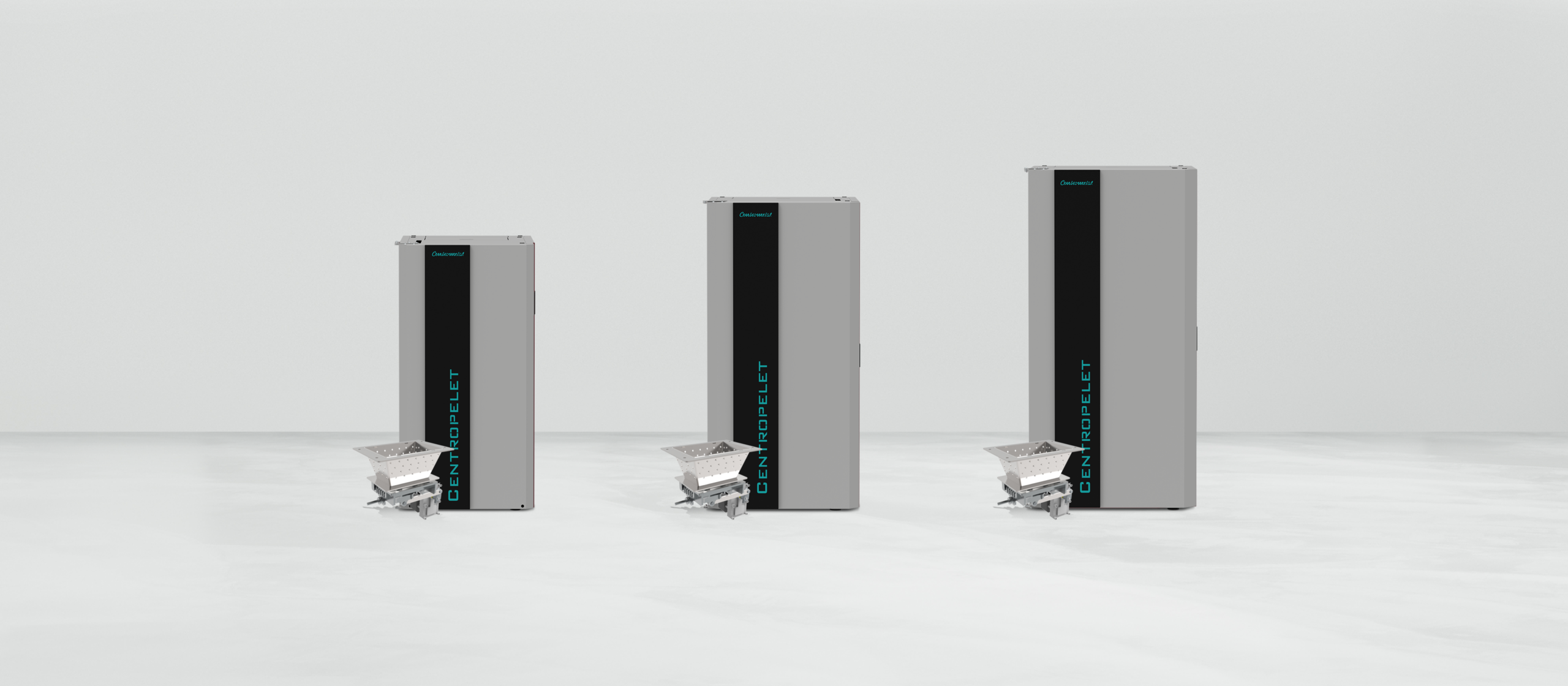Automatic pneumatic system of pellet feed, pipe (standard 20m) and external remotable hopper with a capacity of 1800 liters (1130 kg) of fuel. 3 different external tanks of 450 Kg / 790 Kg / 1.130 Kg for all models of compact boilers.