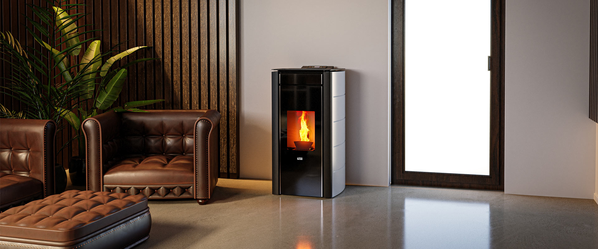 Hermetic line design combines the use of glass and curved lines that trace a unique and precious profile. The very high efficiency (about 98%) of all models guarantees the highest quality on all products. Moreover the ducted versions of 10-12 kW power are particularly useful in case you want to heat more rooms simultaneously.
