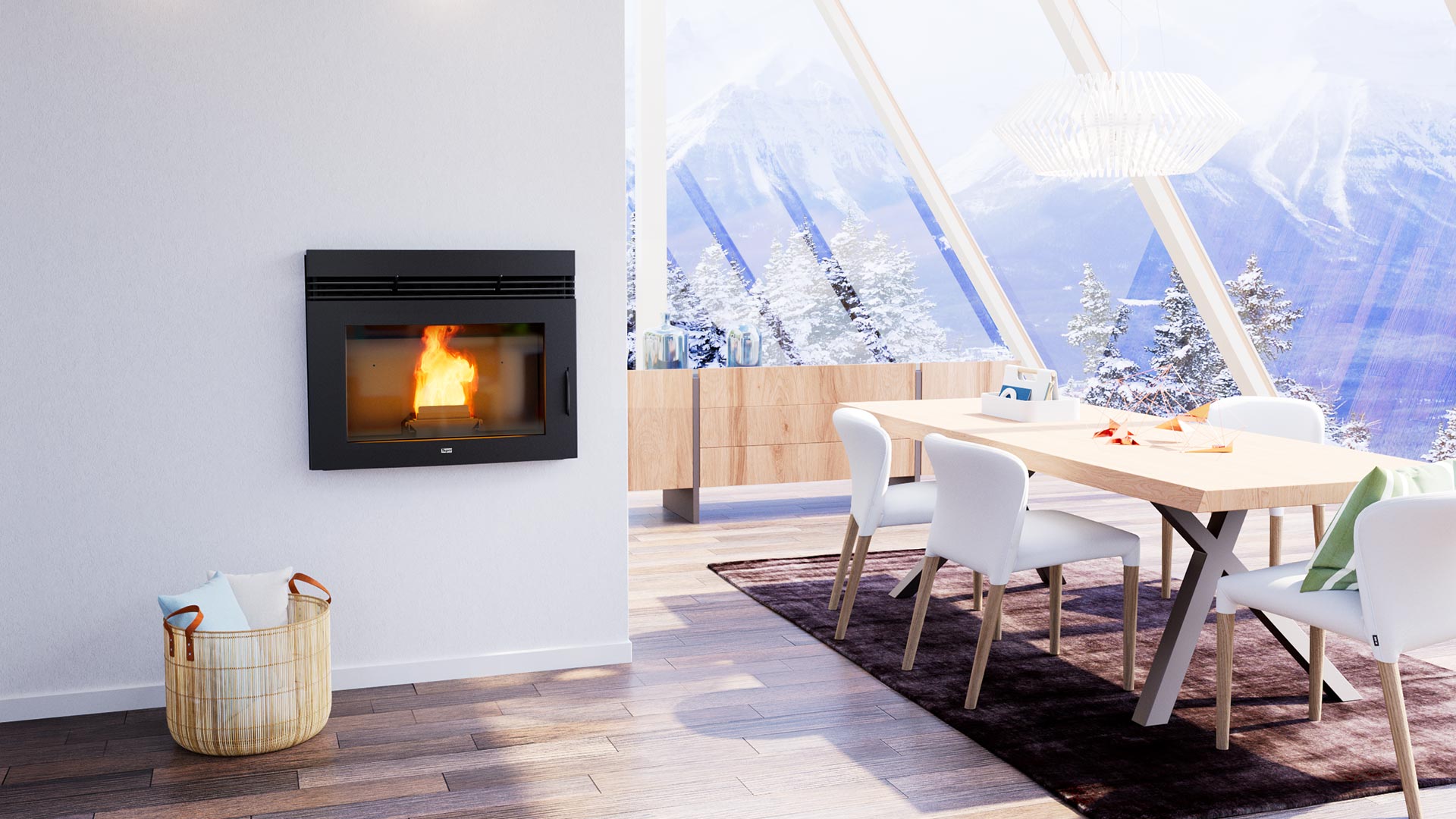 Il carico del pellet è facilitato anche durante il funzionamento grazie a uno scivolo integrato nel cassetto del serbatoio. L’uso del cronotermostato, applicabile a parete, consente di programmare l’accensione e lo spegnimento automaticamente in base alle esigenze del cliente.
