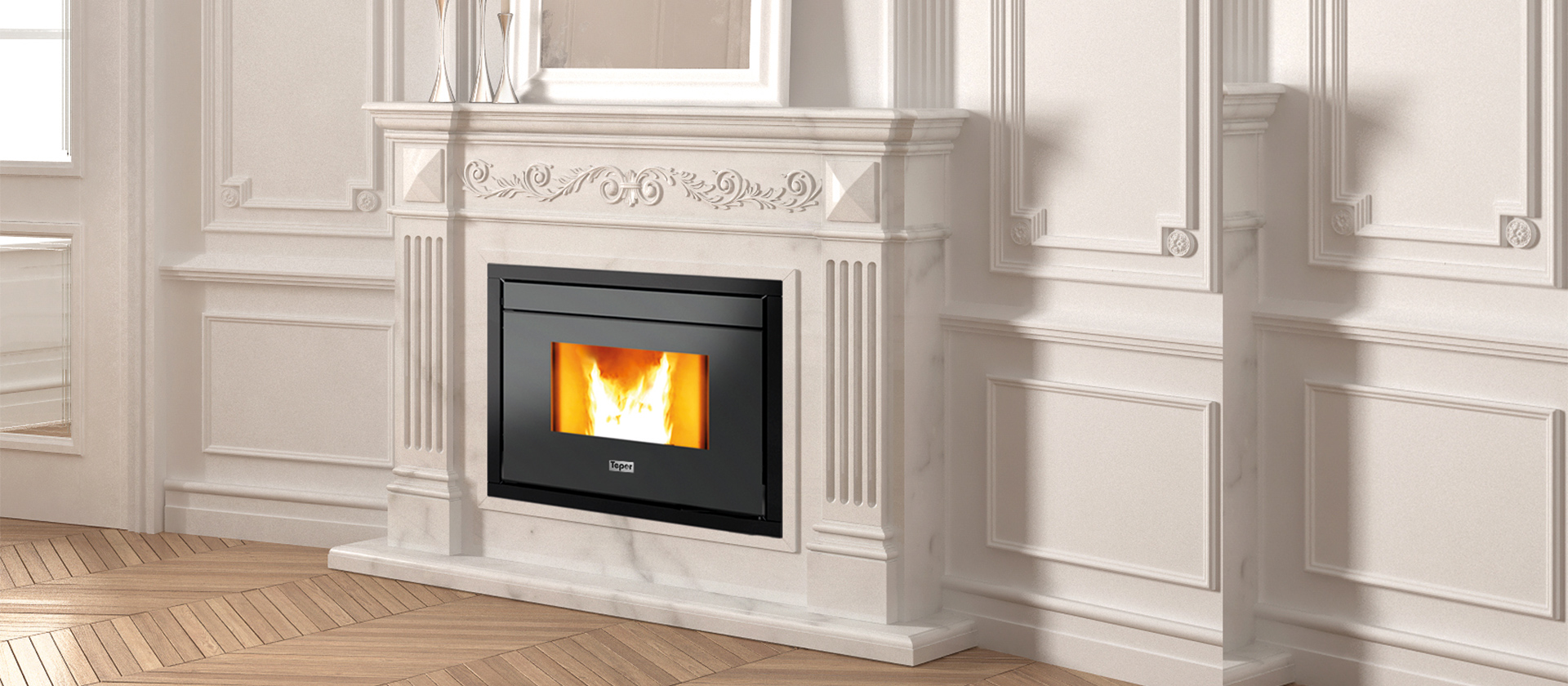 Il carico del pellet è facilitato anche durante il funzionamento grazie a uno scivolo integrato nel cassetto del serbatoio. L’uso del cronotermostato, applicabile a parete, consente di programmare l’accensione e lo spegnimento automaticamente in base alle esigenze del cliente.